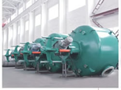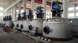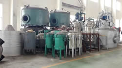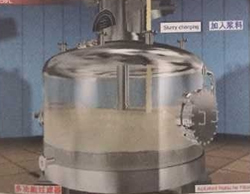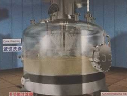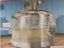 圖①:反應(yīng)釜中的混懸液靠自身的重力或經(jīng)泵注入到過濾器中,然后在濾液接收裝置中抽真空,濾液接收裝置連接在濾液流出口上。 圖②:濾液通過濾床被抽濾至接收裝置,濾餅逐漸在濾床上形成。 圖③:當(dāng)大多數(shù)濾液抽出后,濾床上沉積的濾餅可能還含有5%-20%的溶劑,具體情況與混懸液中固體的性質(zhì)有關(guān)。 圖④:首次過濾完成后,如果需要,可噴淋洗滌液,啟動(dòng)攪拌器反向攪拌,使濾餅重新混懸。 圖⑤:通過操作攪拌器,還可以輕輕地?cái)D壓濾餅,擠出殘余液體。 圖⑥:為了盡可能多地脫除濾餅中的殘留液體或溶劑,過濾器可加上夾套,在其中通蒸汽或熱水加熱干燥。在過濾器的頂部和底部同時(shí)抽真空,殘留溶劑揮發(fā),通過接收裝置上的冷凝器濃縮并回收。對(duì)有些物料,執(zhí)行上述流程即可,毋須另配干燥器進(jìn)行干燥。 圖⑦:最后,經(jīng)過攪拌器在卸料方向的旋轉(zhuǎn)和同時(shí)的下降運(yùn)動(dòng),攪拌器刮鏟一層一層地順序?qū)V餅刮出,濾餅可從卸料口自動(dòng)出料。 圖⑧:攪拌器的攪拌漿和刮鏟示意。 紐克多功能過濾器系統(tǒng)具備如下優(yōu)點(diǎn): 1、系統(tǒng)封閉:此設(shè)備是一個(gè)全封閉運(yùn)行的系統(tǒng),能完全避免生產(chǎn)過程中溶劑對(duì)空氣的污染,同時(shí)能減少因與毒性物接觸而導(dǎo)致操作人員中毒事故的發(fā)生。 2、回收完全:物料和溶劑近乎完全回收,避免因物料遺漏和溶劑揮發(fā)而引起的浪費(fèi),具有很大的經(jīng)濟(jì)效益,特別是處理物料和使用溶劑價(jià)值較高時(shí)更是如此。 3、同時(shí)干燥:過濾、清洗和干燥能在同一設(shè)備中完成。容器壁可以配備加熱套層,從而能夠進(jìn)行干燥的操作。 4、操作連續(xù):能夠使過濾和干燥在一個(gè)連續(xù)的系統(tǒng)內(nèi)進(jìn)行,毋須處理濕濾餅。在過濾器下可以連接一個(gè)干燥器,使?jié)駷V餅直接卸入干燥器,干燥后的產(chǎn)品可以機(jī)械傳送至稱量、包裝等工段。 5、節(jié)約人力:一個(gè)經(jīng)過簡(jiǎn)單培訓(xùn)的非技術(shù)人員即可以完成操作。開、關(guān)、自動(dòng)進(jìn)料、自動(dòng)出料都毋須技術(shù)人員監(jiān)控。 6、清洗徹底:由于此設(shè)備具有自動(dòng)噴淋和重新打漿的功能,濾餅可以得到非常徹底的清洗。并且洗滌液用量較其它類型設(shè)備少,可減少排污量和降低廢水處理費(fèi)用。 7、清洗生產(chǎn):此多功能過濾器干燥系統(tǒng)裝配有粉塵捕集器,能完全收集干燥后產(chǎn)生的粉塵,可滿足高潔凈度的生產(chǎn)操作要求。 | |